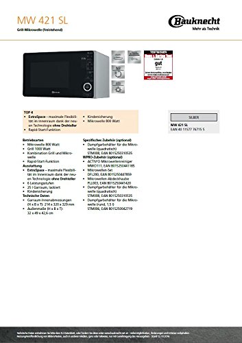 Bauknecht MW 421 SL, 2 in 1 Mikrowelle / ExtraSpace Technologie ohne Drehteller / AutoClean Schnellreinigung / 1100 W / 25 L