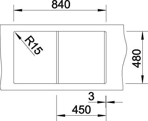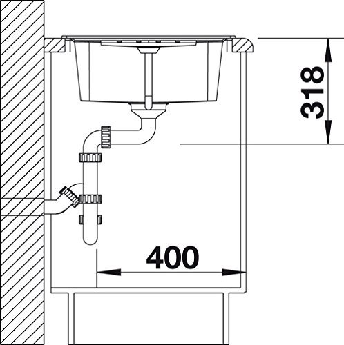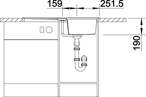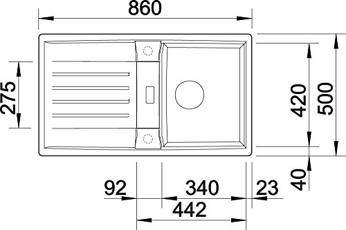 Planungshinweise Breite des Unterschranks: 45 cm Breite der Spüle: 860 mm Beckentiefe: 190 mm Vorgefräste Bohrungen zum Durchschlagen Profilrand