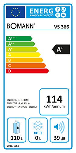 Der Kühlschrank Bomann VS 366 ist mit einem Gesamtnutzinhalt von 110 Litern ideal für den Single-Haushalt geeignet. Er bietet auf zwei höhenverstellbaren Glasabstellflächen, in einer transparenten Obst-/Gemüseschublade mit Glasabdeckung sowie in drei Türfächern genügend Platz für frische Lebensmittel. Dank seiner kompakten Maße lässt sich der VS 366 nahezu überall platzieren. Mit einem Stromverbrauch von 114 kWh im Jahr ist der VS 366 in die Energieeffizienzklasse A+ eingestuft und schont damit Geldbeutel und Umwelt.