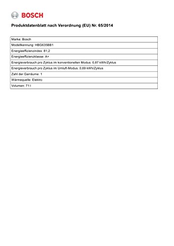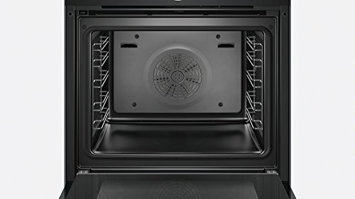 Der Backofen Bosch HBG635BB1 überzeugt mit einem Nutzinhalt von 71 Litern. 13 verschiedene Heizarten und zehn Automatikprogramme machen Kochen, Backen und Garen zu einer Leichtigkeit. In puncto Sicherheit hat der HBG635BB1 eine Kindersicherung, eine Sicherheitsabschaltung, eine Restwärmeanzeige und einiges mehr zu bieten. Die Bedienung erfolgt über einen intuitiven Bedienring und er hat ein TFT-Display mit Klartextanzeige.