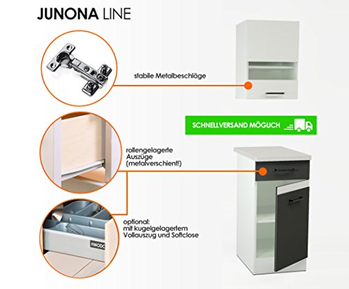 1 x Unterschrank 40cm (1 x Schub oben, 1 x Tür unten, inkl. Arbeitsplatte, Tür-Anschlag: LINKS, inkl. 1 x Einlegeboden)