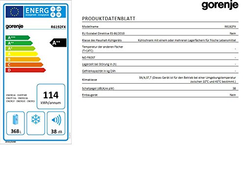 b. Kühlen / Gefrieren: jährl. Energieverbrauch (Aec): 114,00 kWh/Jahr