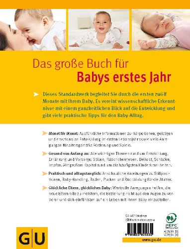 Das unverzichtbare Standardwerk für das erste Jahr mit Ihrem Baby. Im Zentrum des Buches steht die Entwicklung des Babys auf Basis neuester wissenschaftlicher Erkenntnisse, angefangen vom ersten bis hin zum zwölften Monat. Auch den Müttern wird in jedem Monat ein eigenes Kapitel gewidmet, ob zu Lust und Liebe, Beckenboden, Ayurveda oder Schönheit und Pflege. Sie wollen außerdem wissen, welche Grundausstattung nötig ist? Wie viel Schlaf das Baby braucht? Wann es Zeit für den ersten Brei ist? Welche Abend-Rituale es gibt? Wie sich die Partnerschaft mit der Ankunft des Kindes verändert? Dann schlagen Sie nach, denn das Standardwerk gibt umfassend, praxisnah und anschaulich illustriert Antworten auf alle wichtigen Fragen: Moderne Konzepte wie Kinaesthetics fließen ebenso ein wie neueste Erkenntnisse aus der Gehirn- und Schlafforschung. Anleitungen für Babymassagen sowie Kopiervorlagen für Tagebücher bzw. Protokolle zum Essen, Schlafen und Schreien komplettieren den umfangreichen Ratgeber.