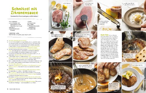 Kochen mit Bildern, Kochen nach Bildern: Wie das geht, zeigt dieses Buch. Die 70 wichtigsten Grundrezepte werden jeweils in einer ausführlichen Bildsequenz Schritt für Schritt dargestellt. Los geht's von den verwendeten Zutaten, gefolgt von ihrer Verarbeitung und detaillierten Zubereitung bis hin zum fertigen Gericht. Außerdem bieten kleine Leseinseln die wichtigsten Informationen zu Produkten, Zubereitungsschritten oder den Gerichten an sich. Aber damit nicht genug: Kann ich erst einmal eine kräftige Suppe kochen, das beste Schnitzel mit knuspriger Panade zubereiten oder eine himmlisch-schaumige Mousse kreieren, dann laden zahlreiche Variationen ein, das Grundrezept mit anderen Lebensmitteln und Aromen abzuwandeln, um immer wieder Abwechslung auf den Teller zu bringen. Kochen, so einfach geht's, lädt zum Blättern, Schmökern und Nachkochen ein und hält, was es verspricht: Viel Spaß und schnellen Erfolg in der Küche!