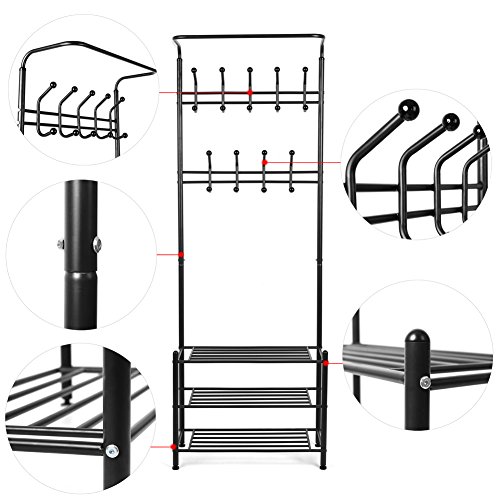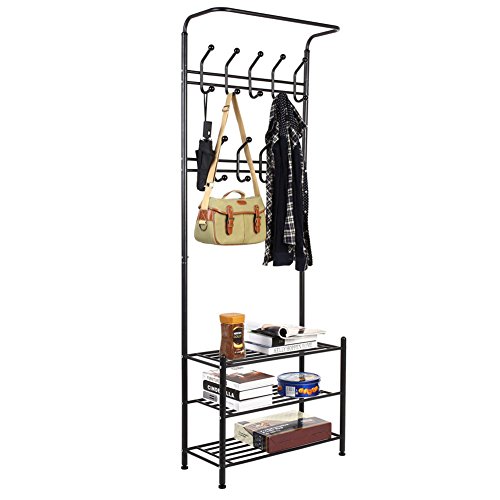 Homfa Garderobenständer ist ein echter Blickfang, der über 3 Ablagefächer Schuhablagen sowie 18 Garderobenhaken verfügt und für die Dekoration im Kinderzimmer, Bad, Büro, modernem Wohnbereich, im Flur oder im Schlafzimmer perfekt geeignet ist. Daneben kann es Ihre Lieblingsbücher, Vasen und alle anderen Dinge tragen , die DVD- und CD-Sammlung beherbergen oder zum Aufstellen schöner Wohnaccessoires dienen. Eins für jeden Raum und jede Funktion!