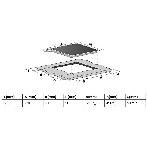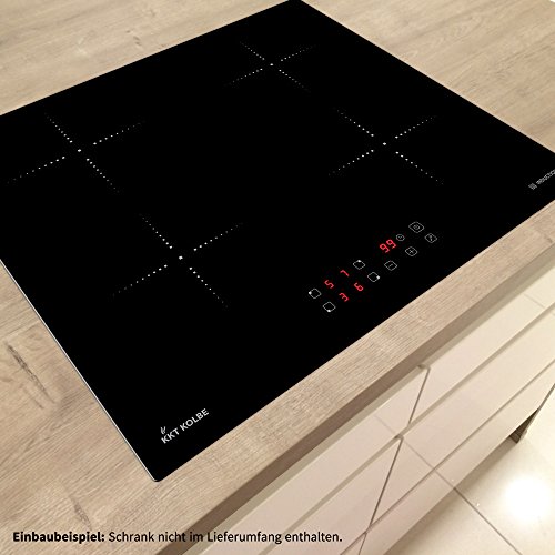 Das KKT KOLBE Induktions-Kochfeld überzeugt durch eine hochwertige Verarbeitung und Funktionalität. Das Kochfeld verfügt über 4 Kochzonen. Die Oberfläche aus hochwertiger SUPERKERAMIK-Glaskeramik sorgt für Qualität und Sicherheit und ist einfach zu reinigen. Das Gerät ist autark, kann also unabhängig von anderen Geräten in Ihre Küche eingebaut werden. Das Gerät kann mittels TouchSelect Sensortasten bequem bedient werden. Die LED-Anzeige zeigt alle wichtigen Informationen bequem auf einen Blick. Jede Kochzone kann neunstufig geregelt werden und garantiert so die optimale Temperatur für alle Speisen. Ein eingebauter Sensor überwacht die Temperatur, um Schäden zu vermeiden. Das Kochfeld schaltet sich dadurch bei zu hoher Temperatur automatisch ab. Falls eine Kochzone noch heiß ist, werden Sie von einer LED-Lampe davor gewarnt. Mit der Timer-Funktion können Sie Kochzonen zeitgesteuert abschalten. Wenn sich kein passendes Kochgeschirr auf der Kochzone befindet, wird diese automatisch abgeschaltet. Die Breite des Kochfelds beträgt 59cm. Bitte beachten Sie, dass unter dem Kochfeld ca. 5 cm Luft zur Kühlung der Induktionsspulen vorhanden sein muss. Vorne zwischen Arbeitsplatte und Backofenblende / Tür muss ein Schlitz vom 5mm x 560mm sein. Die Holztraverse des Schrankes – sofern vorhanden – muss entfernt werden. Die Lieferung des Gerätes erfolgt via Paketversand. Neuware mit 24 Monaten Gewährleistung. Kochfeld-Art: Induktion Besonderheiten: Induktion Farbe: Schwarz Oberfläche: Glaskeramik Anzahl der Kochplatten: 4 Kochfelder Details: 2x 1400 W Zone 160 mm, 2x 1800 W Zone 180 mm, Leistung: 6400W Spannung: 220-240 Einbaumaße: 56x49cm Breite: 59 Höhe: 5,5 Länge: 52 Gewicht: 9 Paketbreite: 64,5 Pakethöhe: 56 Paketlänge: 11,5 Paketgewicht: 11,7