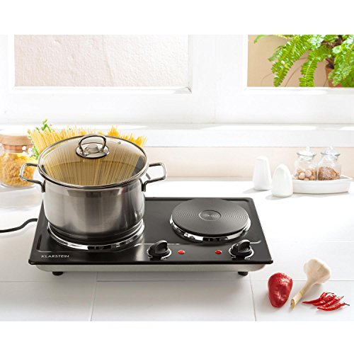 Kompakte und leistungsstarke Kochplatte mit 2 Kochfeldern und 2500 Watt.