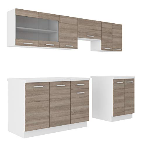Küche Dave 240 cm Küchenzeile / Küchenblock variabel stellbar in Eiche Sonoma Trüffel