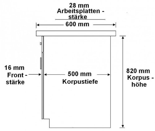 • Gesamttiefe: 60 cm, Arbeitshöhe: 85 cm