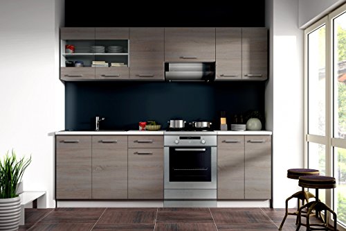 Küche Dave 240 cm Küchenzeile / Küchenblock variabel stellbar in Eiche Sonoma Trüffel