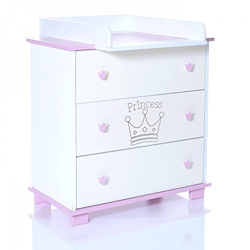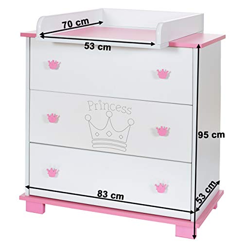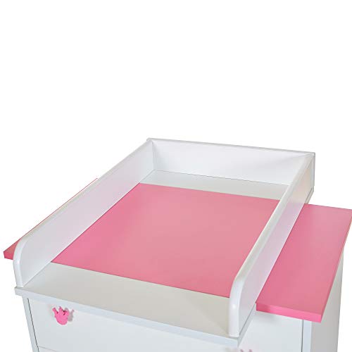 Baby Wickel-Kommode mit abnehmbaren Wickelauflage Aufsatz und 3 grossen Schubladen: weiß-rosa