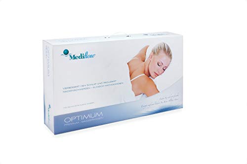 Das Original Mediflow Wasserkissen System besteht aus drei Komponenten: Der Kopf ruht auf einer weichen Schicht aus hochwertiger Füllung, damit Sie sanft und entspannt einschlafen. Eine spezielle Thermo-Isolierung umhüllt den Wasserkern auf der Unterseite des Kissens und verhindert zuverlässig thermische Schwankungen. 3.Der Wasserkern sorgt für die notwendige Unterstützung und passt sich verzögerungsfrei jeder Kopfbewegung an. Die Härte des Kissens ist über die Menge des Wasssers stufenlos regulierbar. Besonders Menschen, die sich vermehrt im Schlaf drehen, unter Nacken- und Rückenschmerzen oder sonstigen Schlafstörungen leiden, können von der Funktionalität und den Eigenschaften eines Mediflow Wasserkopfkissens profitieren. Unter Druck fließt das Wasser automatisch in die vorhandenen Hohlräume, zum Beispiel im Nackenbereich. So werden Kopf und Nackenregion ideal unterstützt und der Schlaf besonders erholsam Laut einer veröffentlichten klinischen Studie an der renommierten John Hopkins School of Medicine tragen Mediflow Wasserkissen zur Reduzierung von Nackenschmerzen bei und erhöhen die Schlafqualität. In jedem Mediflow Kissen stecken rund 25 Jahre Erfahrung, deshalb gibt Mediflow auch 3 Jahre Garantie auf die Dichtheit, Das Optimum Wasserkissen hat zudem 30 Tage „zufrieden-oder-Geld-zurück“ und 3 Jahre Herstellergarantie auf das gesamte Produkt. Die Kissen sind durch die besondere Materialauswahl ideal für Allergiker geeignet und nach OekoTex Standard 100 zertifziert. Die Befüllung erfolgt mit normalem Leitungswasser – ohne Verwendung von Zusatzmitteln. Das Wasser muss vor dem Waschen entfernt werden, dann ist das Kissen in der Maschine waschbar. Bei Verwendung eines Schonbezuges sollte das Wasser einmal jährlich gewechselt werden. Eine genaue Anleitung, sowie ein spezieller Einfülltrichter liegen dem Kissen bei.