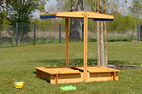 Einfacher Sandkasten mit verstellbaren Dach für optimalen Schattenwurf.Die Sitzflächen können heruntergeklappt werden. So verhindern Sie das Ihr Sandkasten als Katzenklo genutzt wird. Lieferumfang Sandkasten mit Sitzfläche und Dachinkl. Aufbauanleitung Merkmale: KiefernholzImprägniert Dach ist verstellbar und absenkbar Sitzflächen für einfaches Spielen Sitzflächen einfach hochklappen Maße (BxTxH) Außenmaße:Breite: 122 cm breitLänge: 120 cmHöhe: 123 cm (Dachmitte) Innenmaße Sandkasten:Breite: 100 cmLänge: 100 cmHöhe: 18 cm Sitzfläche:Sitzhöhe: 21 cmTiefe: 18 cm