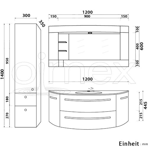 – Seitenschrank auf der linken Seite und Unterschrank mit großzügigem Platzangebot