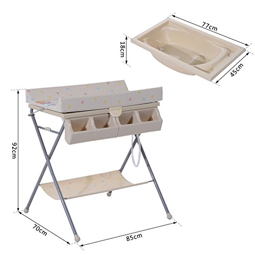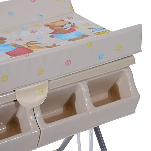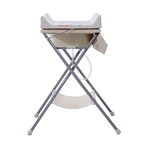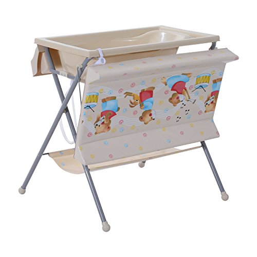 Dieser süße Wickeltisch ist ein praktischer Helfer für Eltern mit Babys von bis zu 12 Monaten. Er ist mit einer Badewanne und einer Wickelauflage ausgestattet, sodass die Eltern damit ihr Baby ganz bequem stehend windeln und baden können und nicht mehr unter Schmerzen durch Windeln sowie Baden des Babys in gebückter Haltung zu leiden brauchen. Die für Windeln und Baden notwendigen Gegenstände können Sie einfach in die seitlichen Ablagefächer legen. Nach dem Gebrauch lässt sich diese Wickelkommode dank der Klappfunktion platzsparend verstauen.