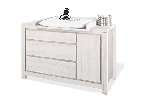 Pinolino Kinderzimmer Line extrabreit großBeschichtet: MDF, Eiche grau3-teilig mit Kinderbett, extrabreiter Wickelkommode und großem KleiderschrankKinderbett:Beschichtet: MDF, Eiche grauL 148 cm, B 78 cm, H 84 cmMatratzenmaß 140 x 70 cm3 SchlupfsprossenLattenrost 3-fach höhenverstellbar von 19 cm auf 29 cm und 43 cmUmbaubar zum Juniorbett und Kindersofa, 2 Umbauseiten enthaltenWickelkommode extrabreit:Beschichtet: MDF Eiche grauB 146 cm, T 77 bzw. 56 cm, H 100 cmWickelhöhe 93 cm Wickelaufsatz abnehmbar1 Tür, 3 SchubkästenSoft-Close und Self-Soft-CloseSchräg eingefräste Griffmulden1 höhenverstellbarer EinlegebodenKleiderschrank groß:Beschichtet: MDF Eiche grauB 147 cm, T 56 cm, H 184 cm6 Türen, 3 SchubkästenSoft-Close und Self-Soft-CloseSchräg eingefräste Griffmulden6 höhenverstellbare Einlegeböden, 3 Kleiderstangen
