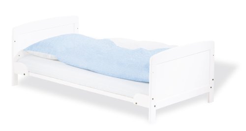 Pinolino Kinderbett Viktoria Wie schön träumt es sich im Pinolino Kinderbett Viktoria! Das zauberhafte Design aus Kiefer Teilmassiv weiß lackiert strahlt Ruhe und Harmonie aus. Die Lackierung ist speichelfest und absolut unbedenklich für Ihr Kind. Merkmale des Pinolino Kinderbett: Teilmassiv: Kiefer, weiß lackiert LxBxH 144 x 75 x 80 cm Matratzenmaß 140 x 70 cm 3 Schlupfsprossen Lattenrost 3-fach höhenverstellbar von 16 cm auf 32 cm und 48 cm umbaubar zum Juniorbett und Kindersofa, 4 Umbauklötze enthalten Hinweis: Matratze und Bettset sind nicht im Lieferumfang enthalten.
