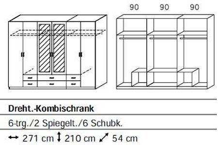 Rauch 5F64 Drehtürenschrank / 6-türig/B 271 H 210 T 54 cm/Korpus/Front: alpinweiß