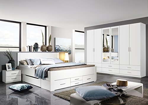 Rauch Schlafzimmer Komplettangebot Drehtürenschrank 6-türig, Schubkastenbett 180 x 200 cm, 2 Nachtkonsolen alpinweiß