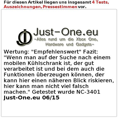 Just-One.eu (06/15): Wertung: „Empfehlenswert“ Fazit: „Wenn man auf der Suche nach einem mobilen Kühlschrank ist, der gut verarbeitet ist und bei dem auch die Funktionen überzeugen können, der kann hier einen näheren Blick riskieren, hier kann man nicht viel falsch machen.“ Getestet wurde NC-3401