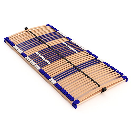 stabiler Lattenrost 100% BUCHE Lattenrahmen – nicht verstellbar, starr – SCHULTERFRÄSUNG, 7 Zonen, 44 Federleisten, Härte-Regulierung, Mittelgurt – FIX COMFORT 44® – fertig montiert (90x200cm)