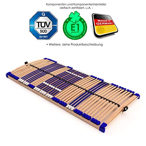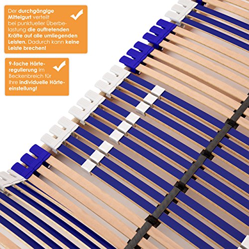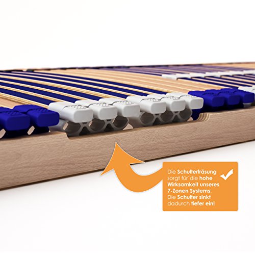 stabiler Lattenrost 100% BUCHE Lattenrahmen – nicht verstellbar, starr – SCHULTERFRÄSUNG, 7 Zonen, 44 Federleisten, Härte-Regulierung, Mittelgurt – FIX COMFORT 44® – fertig montiert (90x200cm)