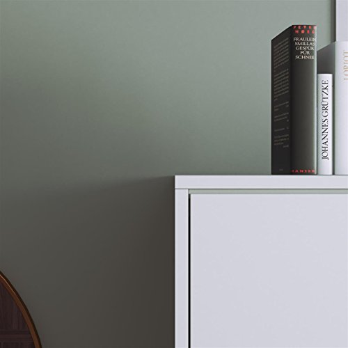 Das Schrankbett ist aus Spanplatte hergestellt. Die Front besteht aus 3 oder 4 Teilen.