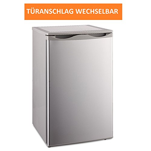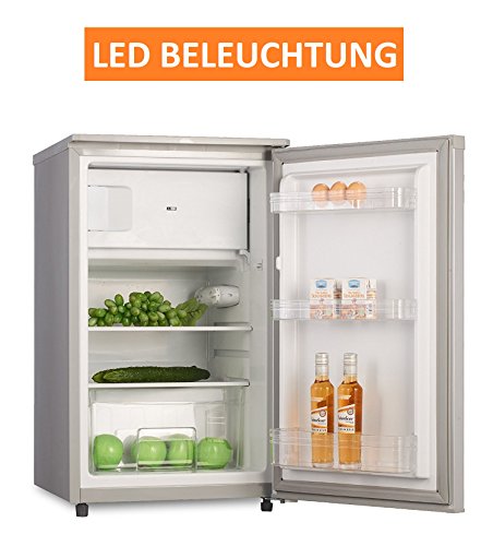 Kühlschrank mit Gefrierfach A++ (90L) 4-Sterne-Gefrierfach (-18 °C) LED-Innenbeleuchtung ✓ Abtauautomatik ✓ höhenverstellbare Glasablagen ✓ Gemüsefach ✓ Türablagen ✓ Silber