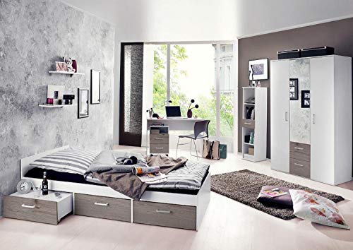 storado.de Jugendzimmer Berlin weiß matt Eiche Nelson 6 TLG Komplett Set Kinderzimmer Möbel