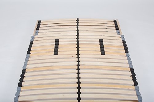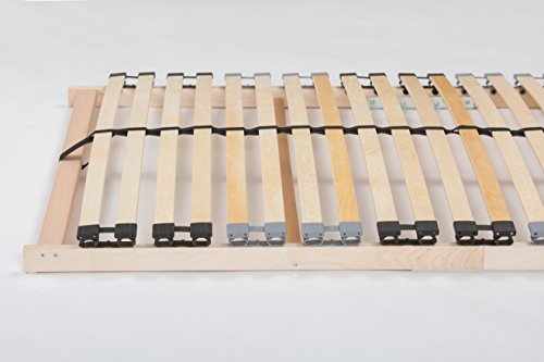Beschreibung:Mehrfach verleimter Schichtholz-Lattenrost, 28 Federleisten, leichte Montage