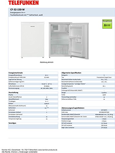 Telefunken CF-32-150-W Kühlschrank / A+++ / 83,8 cm 62kWh / 73 L Kühlteil / Gefrierfach / Türanschlag wechselbar / Höhenverstellbare Füße