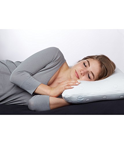mit dem Kopf tatsächlich in der Mitte des Kissens zu liegen und die orthopädische Form des Kissens (Nackenwelle) perfekt zu nutzen.