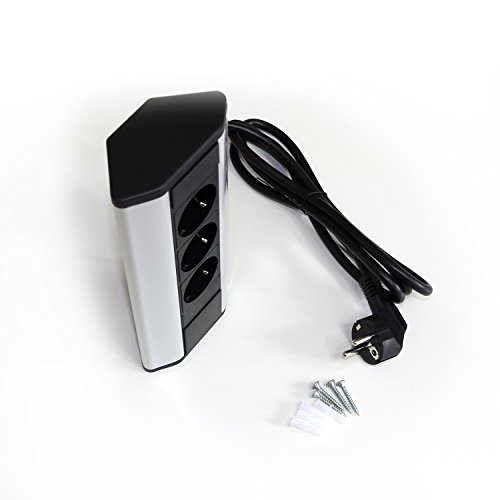 Nie mehr Kabelsalat auf Ihrer Arbeitsplatte oder Ihrem Tisch. Die praktische Einbausteckdose schafft Ordnung und beinhaltet 3 Steckdosenelemente. Auch als Eck und Unterbausteckdose geeignet.