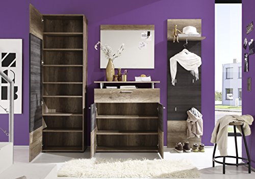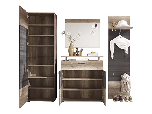 Lieferumfang: Artikelnummer: Garderoben Set »LUXENA231« E231.1406.911.58 bestehend aus: Artikel / -nummern ca. Maße: [B/H/T] 1x Schuhkommode E231.1406.867.58 90 x 99 x 37 cm 1x Wandspiegel E231.1406.451.26 80 x 65 x 2 cm 1x Garderobenpaneel E231.1406.440.58 50 x 191 x 28 cm 1x Hochschrank E231.1406.117.58 60 x 191 x 37 cm