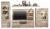 bestehend aus: Vitrinenschrank B/H/T ca.: 67/201/37 cm 1 Glas/Holztür 3 Einlegeböden 2 Konstruktionsböden Vitrinenfach Klarglas / innen weiß Türanschlag rechts oder links montierbar breite Griffleiste Aluoptik 2 x Wandregal je B/H/T ca.: 115/18/23 cm mit Rückwand und Ablagefläche verdeckte Wandbefestigung TV-Unterteil B/H/T ca.: 180/57/47 cm 1 Schubkasten 2 Klappen 1 offenes Gerätefach Wandpaneel B/H/T ca.: 180/87/23 cm 2 Regalböden Highboard B/H/T ca.: 97/150/37 cm 1 Holztür 1 Holz/Glastür 4 Einlegeböden 1 Konstruktionsboden Vitrinenfach Klarglas / innen weiß Beleuchtung optional mitbestellen