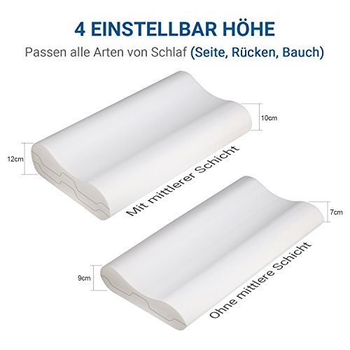 UTTU Sandwich Kissen, Höheneinstellbares Memory Foam Kopfkissen, Orthopädisches Nackenstützkissen, Visco Schlafkissen mit Bambus Bezug, Ergonomisches Nackenkissen für HWS