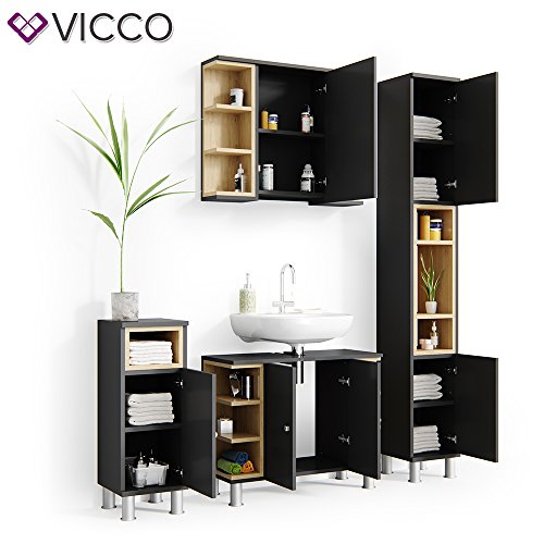 Vicco Badmöbel Set AQUIS Anthrazit Spiegel Waschtisch Unterschrank Badschrank