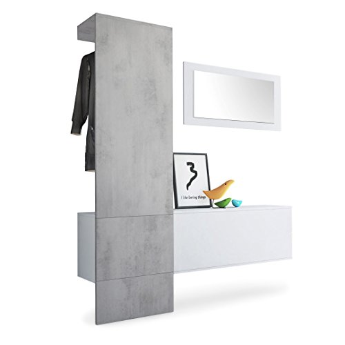 Vladon Garderobe Wandgarderobe Carlton Set 4, Korpus in Weiß Matt/Paneel in Beton Oxid Optik