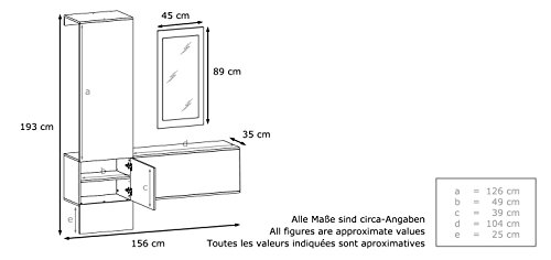 Stellmaße der Garderobe wie abgebildet in cm (BxHxT): 156 x 193 x 35