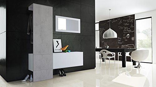 Vladon Garderobe Wandgarderobe Carlton Set 4, Korpus in Weiß Matt/Paneel in Beton Oxid Optik