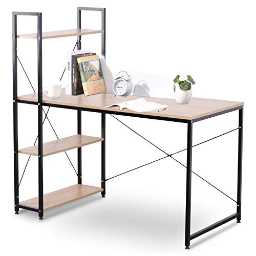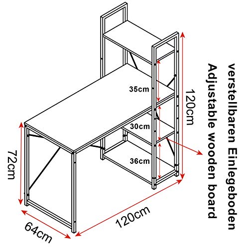 WOLTU Computertisch mit Regal. Mit dem Regal, können Sie Bücher, Schreibutensilien und Dekoration auf dem Seitenregal platzieren und den Computer auf den Tisch stellen.