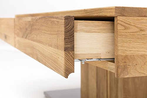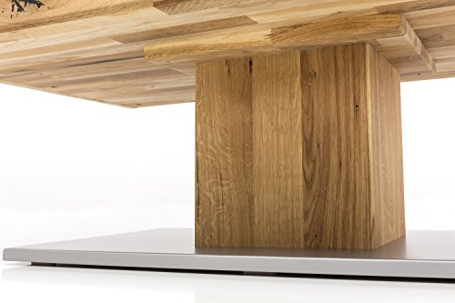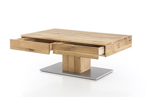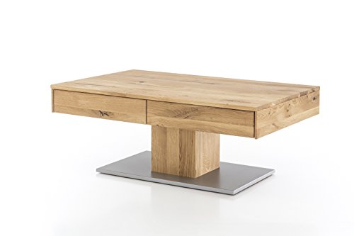 Mit dem Massivholz Couchtisch aus Wildeiche liefert WOODLIVE by Living Home ein ganz besonderes Stück Natur für Wohnräume. Dabei ist der hochwertig verarbeitete Beistelltisch wegen seiner warmen Farbe, seiner langlebigen Haltbarkeit sowie seiner enormen Robustheit mehr als beliebt. Die wunderschön strukturierte Maserung, die mit Wuchsrissen und Asteinschlüssen versehen ist, verleiht jedem Tisch seinen ganz individuellen Charakter und wird erst dank des BIO Leinöls so richtig ausdrucksstark. Zusätzlich harmoniert die moderne Bodenplatte in Edelstahloptik perfekt mit dem stabilen Massivholz aus Wildeiche und überzeugt mit einem zeitlosen, eleganten Design. Darüber hinaus besitzt der Holztisch zwei integrierte Schubladen mit Softclose-Beschlag, die ein Zuschlagen verhindert und sich stattdessen auf den letzten Zentimeter selbst einzieht. Ob als Wohnzimmertisch für Snacks und Getränke oder als individueller Nachttisch – dieser Couchtisch eignet sich für jeden, der es gern etwas rustikaler, aber dennoch mit viel Liebe zum Detail mag.