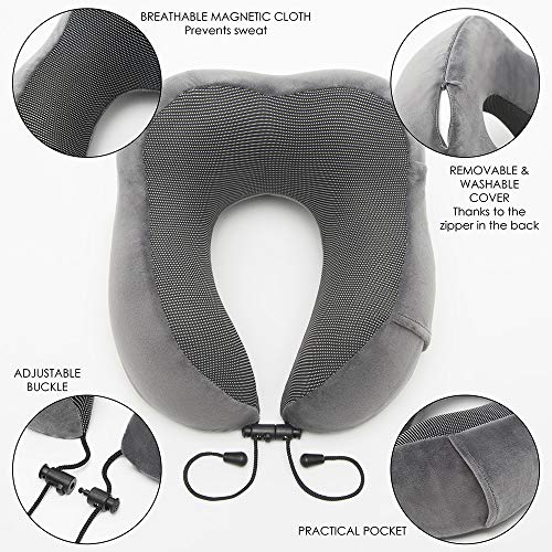 ◾ U-förmiges viskoelastisches Schaumstoff-Nackenkissen, das sich perfekt an die physiologische Krümmung des Halses anpasst und den Halsdruck reduziert.